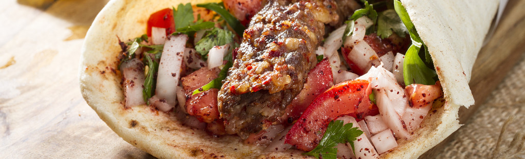 kebab comes with meat, lettuce, tomatoes, onion and two sauce of your choice